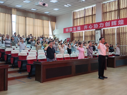 最后,杨华忠校长强调:“具有优良师德,是作为一名人民教师的底线和红线,只有守好、守牢这道防线,才能在教育促进学生健康成长的路上当好陪伴者、守护者和引路人。”接着,杨校长带领全体教职工进行了庄严的集体宣誓,重温育人初心。会上,全体教职工签署《师德师风承诺书》,行政干部签署《师德师风建设工作责任书》,层层压实责任,构建起师德建设的长效机制。