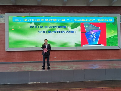 (本校讯) 秋兰飘香,硕果盈枝。为表彰先进,树立典范,弘扬崇高的师德师风,10月13日,寿安学校在操场隆重举行了“第五届十佳尚善教师”颁奖典礼。全校师生齐聚一堂,共同见证了这一荣耀时刻,感受榜样的力量与尚善精神的传承。