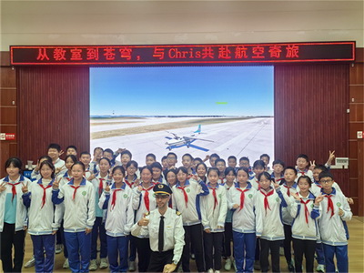 10月21日,通过互联网,寿安学校七年级班的孩子们和外籍(法国)友人 Chris 真切地体验了一场“航空梦想”。课堂上,Chris 以双语形式向孩子们讲解了世界航空航天发展史,科普了飞行员执照考取流程。最让孩子们兴奋不已的是“搭配飞行模拟体验”,通过模拟飞行器,Chris带孩子们“驾驶”飞机掠过成都龙泉山、都江堰等地标建筑、名胜景点,课堂上不时传来孩子们欢呼雀跃人叫声。通过互动问答,不仅点燃了孩子们飞行热情,更开启了孩子们航空梦想。