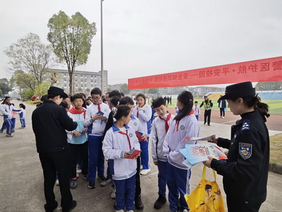 活动由学校学生发展中心蒋勇主任主持。宣讲开始前,派出所民警团队的叔叔阿姨们为同学们发放了法制及安全教育相关宣传资料,将交通、食品卫生、电信诈骗、网络安全、如何加强自我保护等安全防范知识送到每一位孩子手中。